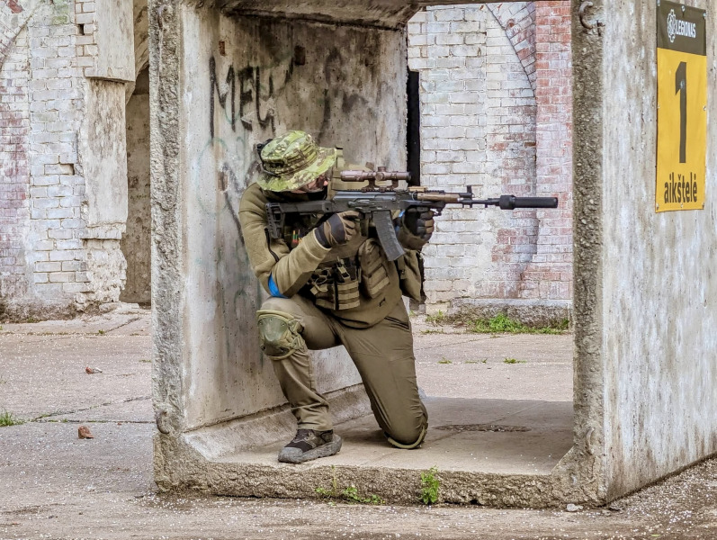 A replica of the AK-12 carbine manufactured by Arcturus. The AK12 AEG was made mainly from steel and a few parts from aluminium and a durable polymer. Steel is used for the bayonet mount, the base of the musket with gas tube nut, the gas tube, the barrel holder, the cap, the dummy barrel, the selector, the barrel locking mechanism, the trigger guard, the barrel lock, the magazine lock and the dummy barrel. Aluminium is used for the barrel, 5-position stock guide, dorsal RIS rail and flame damper. Polymer is used for the magazine, stock with rubber feet, pistol grip and handguard with gas tube cover.