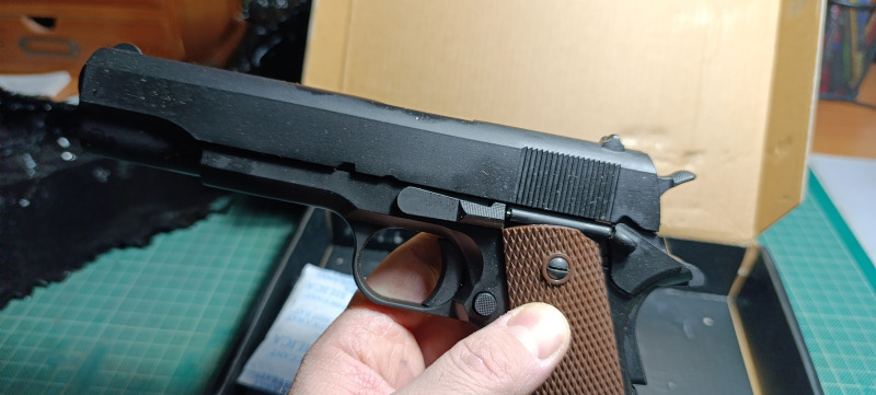 In the replica we are dealing with a very realistic blow-back system. With each successive shot, the replica's lock moves backwards and then returns to its initial position while loading another round into the chamber. After the last shot is fired and an empty magazine is encountered, the lock remains in the rear position.