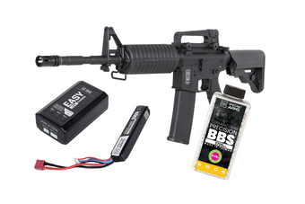 - 3 magazynki w zestawie Wersja z lunetą i dwójnogiem Wykonanie: metal + tworzywo Waga: 3245g Długość: 1135mm Kolor: czarny Prędkość wylotowa: ~420 Napęd: sprężynowy Producent: Specna Arms